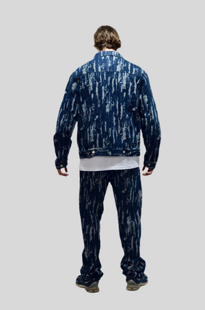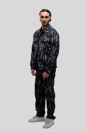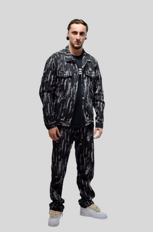 Cet ensemble en jean déchiré allie l’esprit rebelle et le style moderne avec une veste et un jean coordonnés. Fabriqué dans un denim de qualité, il se compose d’une veste en jean au design audacieux, avec des détails déchirés et un fini usé, et d’un jean assorti, lui aussi travaillé avec des effets de déchirures pour un look urbain et tendance. La coupe légèrement ajustée du jean et la veste structurée apportent un équilibre parfait entre confort et allure affirmée. Cet ensemble est idéal pour ceux qui cherchent à afficher une attitude décontractée tout en restant dans une esthétique soignée et moderne.