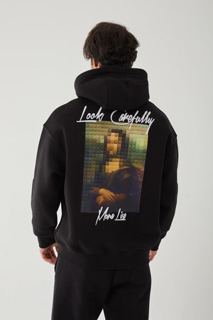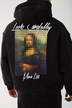 Ajoutez une touche originale à votre style avec ce sweat-shirt oversize fabriqué en Turquie. Au dos, la célèbre Mona Lisa est revisité à travers une mosaïque de LEGO, offrant un design moderne et ludique. Une pièce unique qui mêle art classique et pop culture pour un look audacieux et créatif.