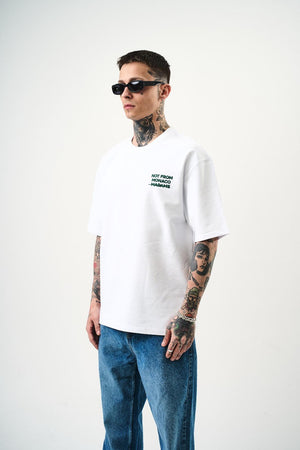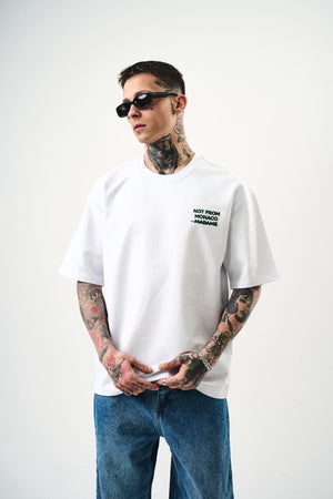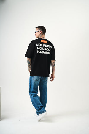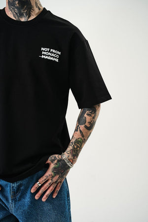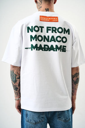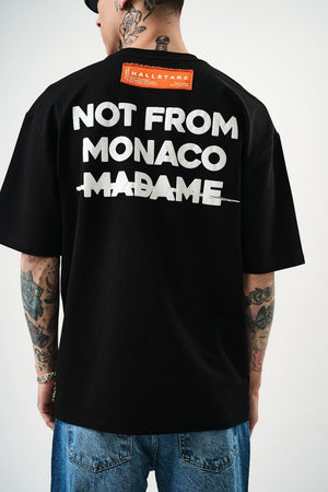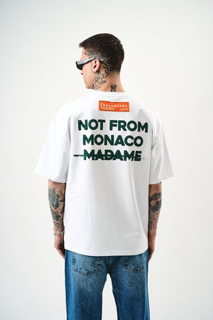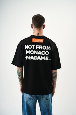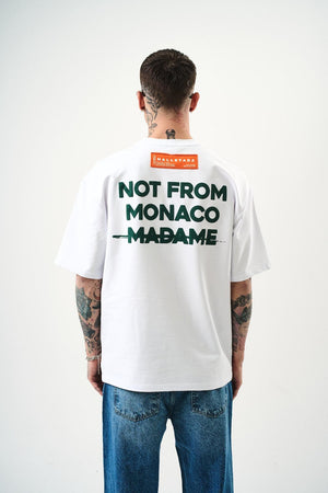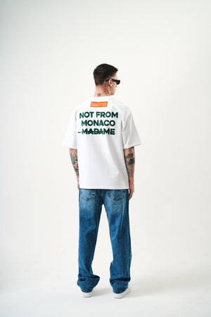 T-shirt 100% coton avec "NOT FROM MONACO MADAME" en relief. Un design audacieux qui affirme une déclaration forte avec style et confort.