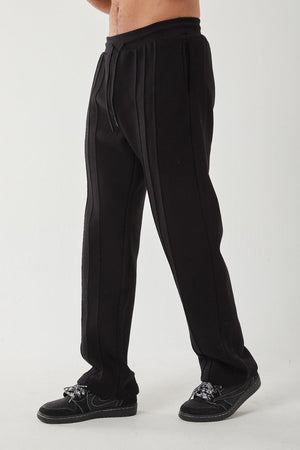 Complétez votre look avec ce bas de jogging en coton, conçu pour offrir confort et style. Fabriqué en Turquie, il présente une coupe décontractée et une douceur agréable, idéale pour un look casual. Les trois traits en relief le long de la face avant de chaque jambe ajoutent une touche subtile mais moderne, parfaits pour compléter les hauts unis de notre gamme et créer un ensemble harmonieux.
